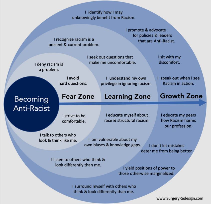 Shared with me by my co-worker Natasha Kong, and inspired by the work of Dr. Ibram X. Kendi, this circles diagram shows the creator’s journey toward becoming Anti-Racist.